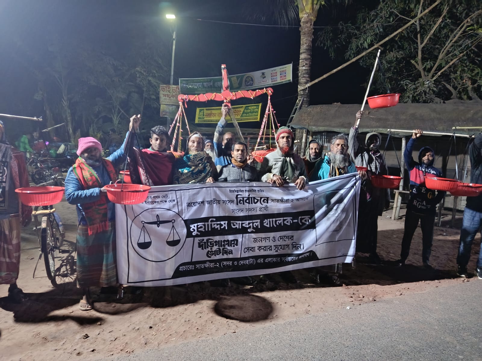 ধুলিহরে তীব্র শীত উপেক্ষা করে জামায়াতে ইসলামীর নির্বাচনে প্রচারণা এবং দাঁড়িপাল্লা প্রতীক প্রদর্শনী