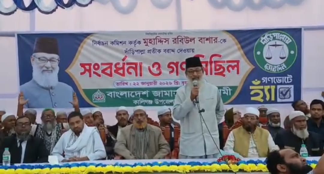 কালিগঞ্জে দাঁড়িপাল্লা প্রতীকের মনোনীত এমপি প্রার্থী রবিউল বাশারের সংবর্ধনা ও গণমিছিল
